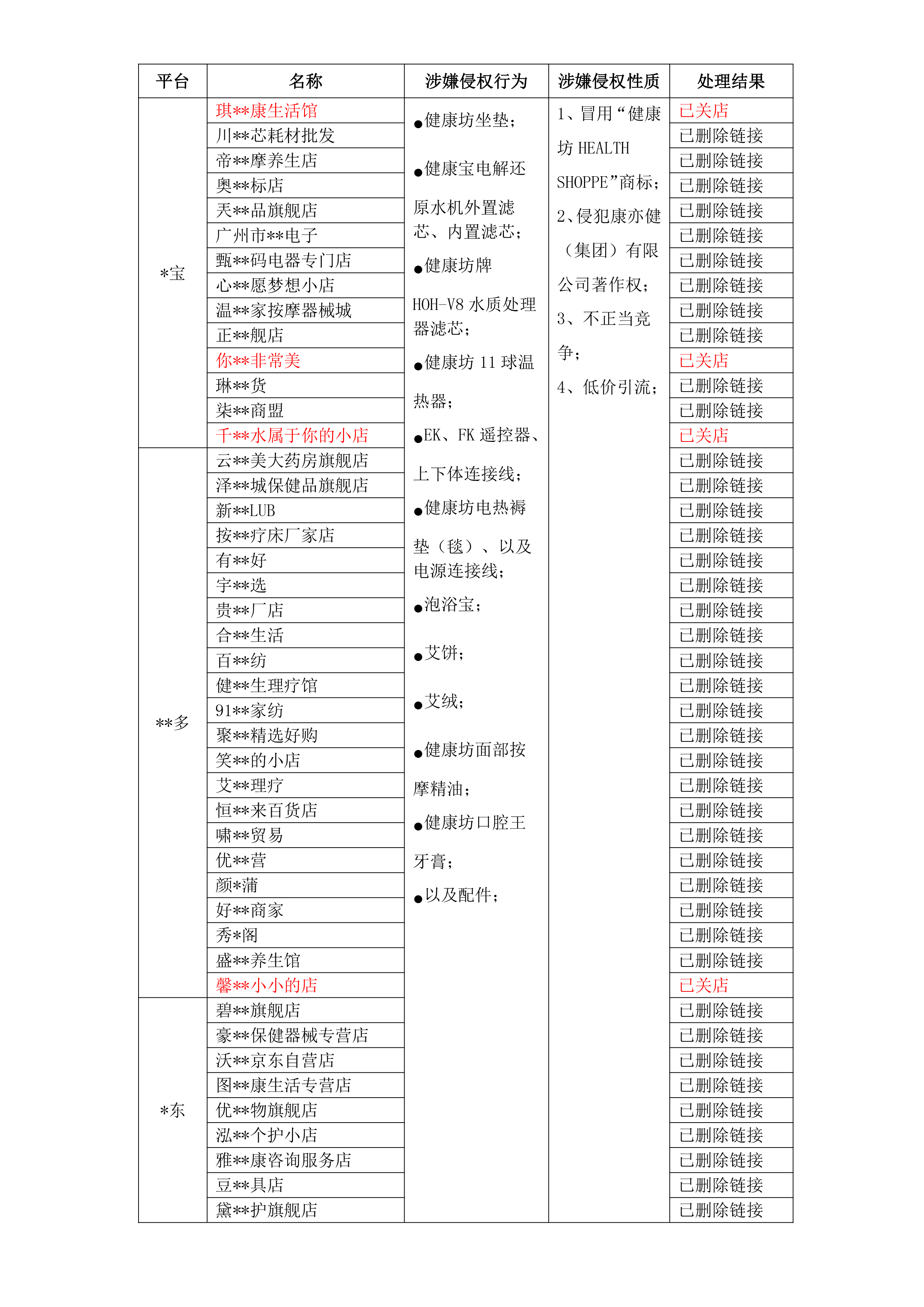三、截止到2025年2月25日,我公司已對超過50家侵權網(wǎng)店進行投訴,并成功要求其把網(wǎng)店內(nèi)的侵權鏈接進行刪除或關店: